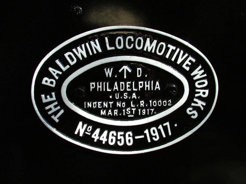 The works plate shows that the loco is number 44656 - built in 1917. Unusually the plate shows the actual date of completion - 1 March 1917.