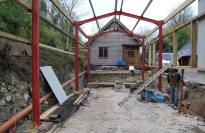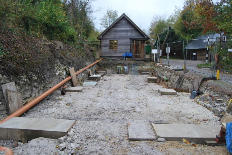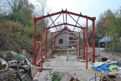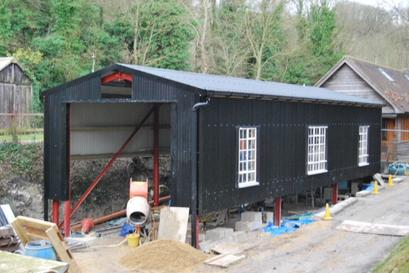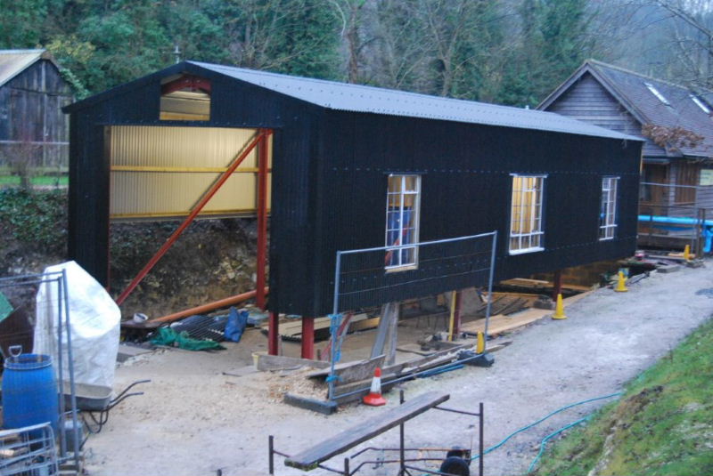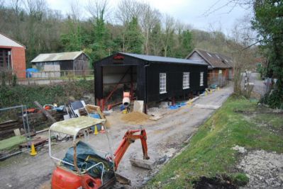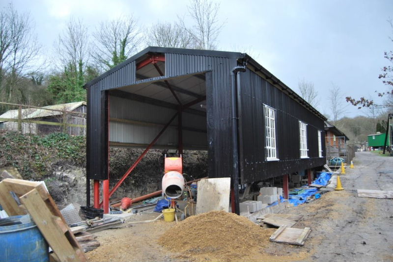 January 2016 As part of the De Witt Kilns project, a new loco shed has been built to house "Burt", the standard gauge Motor Rail 9019/1951 originaly from Burt, Boulton and Haywood Timber, Erith, Kent. Started in December 2014, work has required a metre deep excavation in order to gain a level trackbed for the eventual occupants. Burt will be the first occupant. The shed will also accommodate two wagons awaiting completion of their restoration.