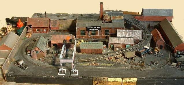 Martin Lovell's whimsical 009 layout "Weltitt & Hope" shows just how much can be fitted into a small space and still retain interest and realism. As can be seen from the plaques on the front of the layout, it has been seen at Amberley on several previous occasions. |
