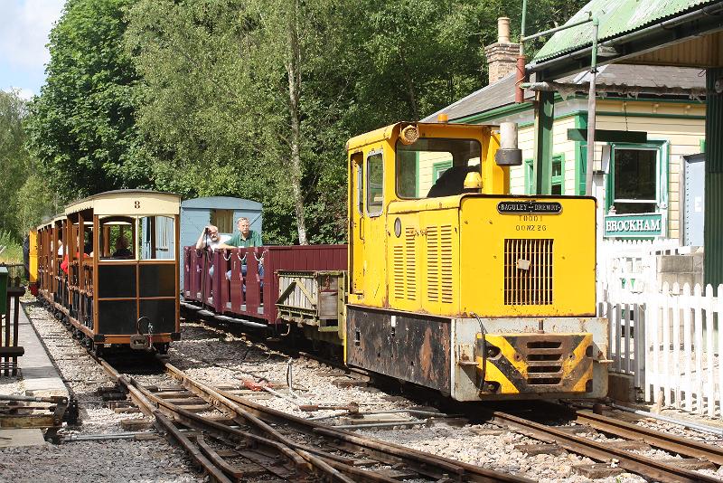 On Sunday it was decided to haul the large passenger rake with Peldon and the Baguley-Drewry 3751/1980 - the latter arrives at Brockham bound for Cragside.