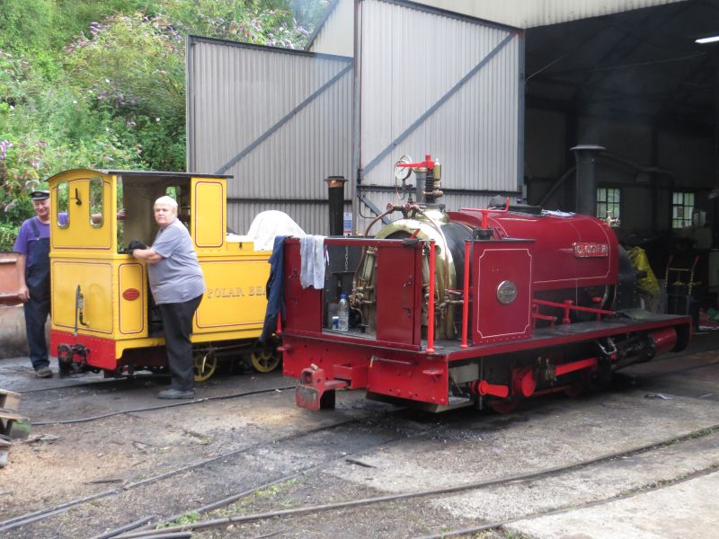 Wendy gets steam up on Sunday morning. The long chimney extension is to improve drafting and speed up steam raising. Peter, one of the Museum residents, stands in the background