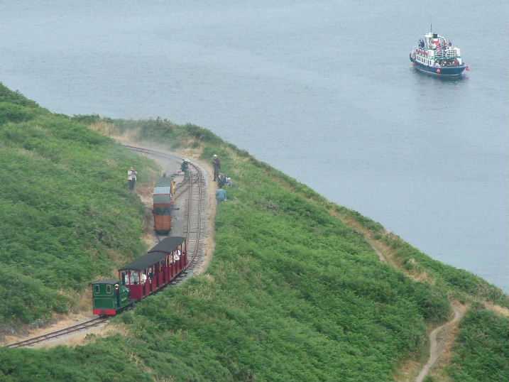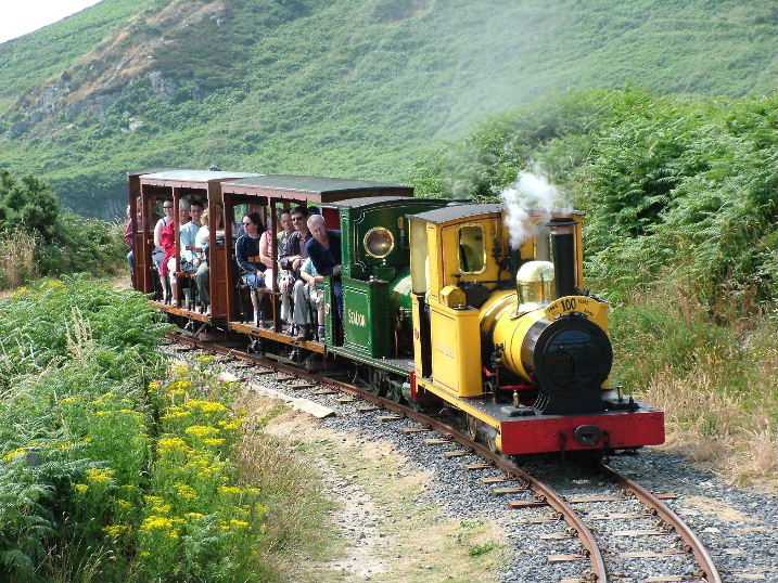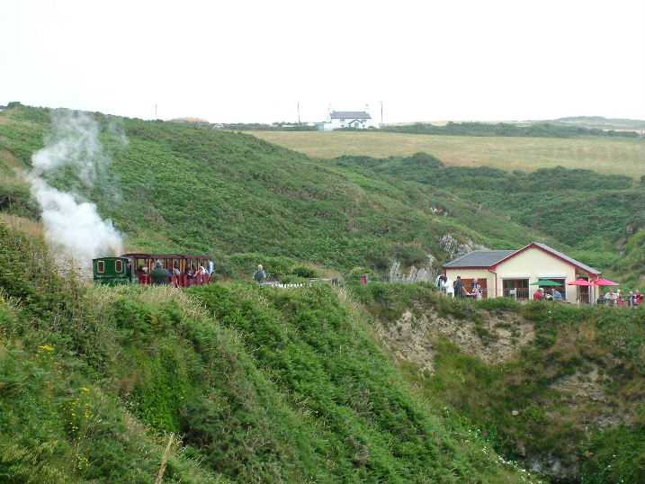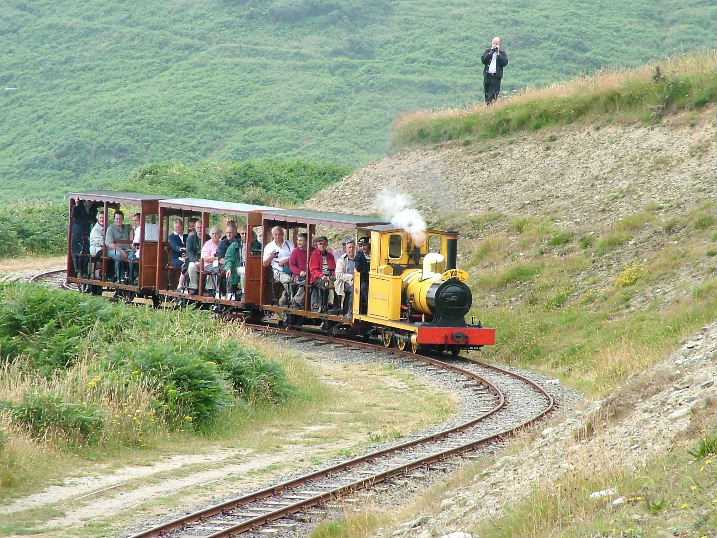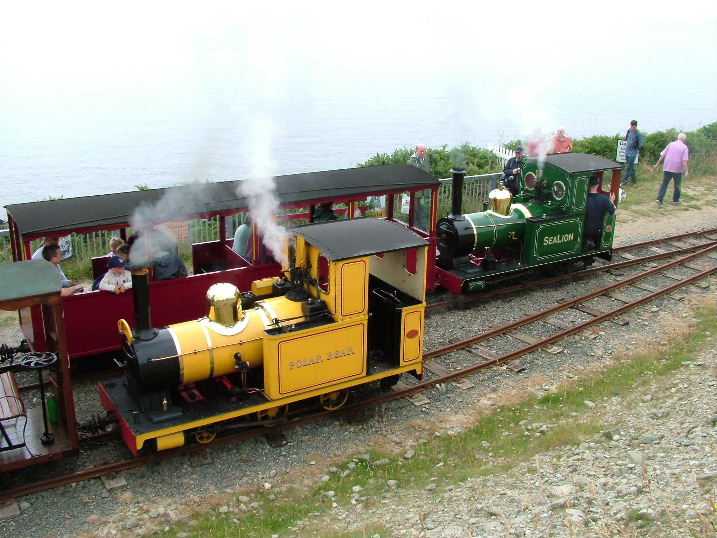 Polar Bear rounds the headland with yet another trainful of happy holiday makers - well it is a tourist railway after all. Traces of the original track can be seen all along this section - between the new track and the cliff edge.