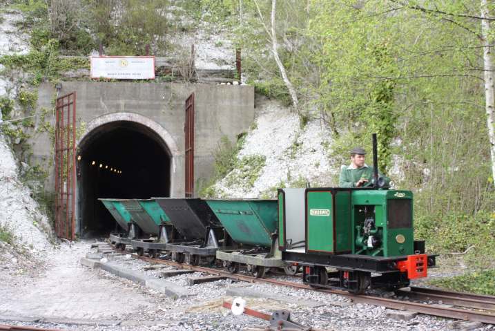 Towards the end of the day Dinorwic was transferred to the tunnel line for photgraphic reasons. Here the skips are shunted into the tunnel ....