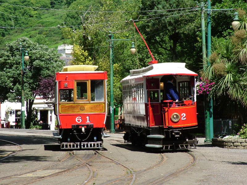 One of the original 1893 cars, No.2 was in use on a Douglas to Laxey sort and runds past its trailer.
