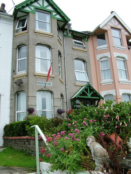 Glenesk - our guest house in Onchan. The mooning dwarf was in the next-door garden!