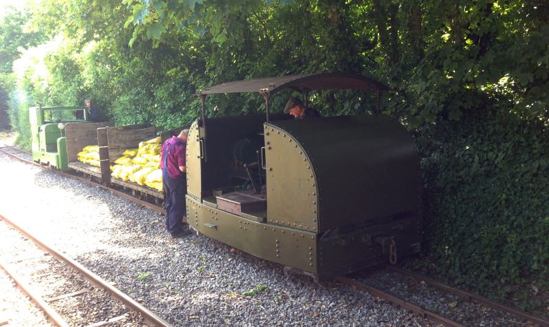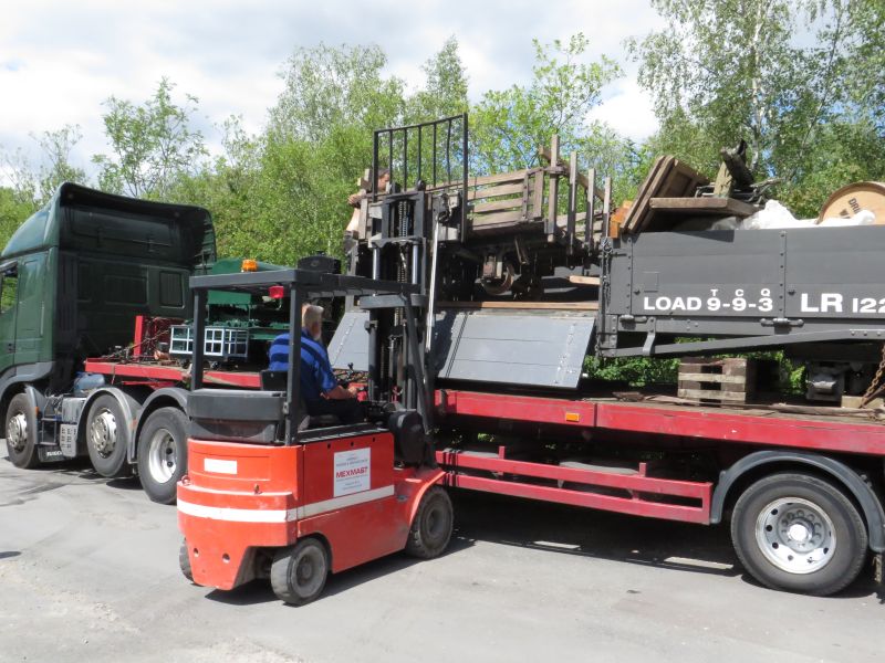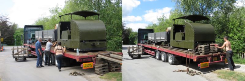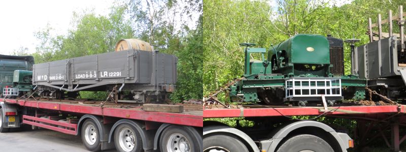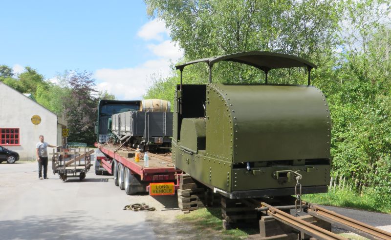 Already on the trailer were Apedale's D-class bogie wagon and a bow-framed Simplex.