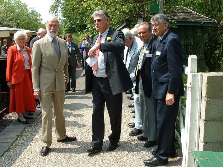 On alighting from the train, Graham Toole-Mackson, the Museum's Chairman of Trustees, introduced the Prince to the railway volunteers responsible for the planning and execution of the project. Left to right, they are John Crosby, John Beard and Dick Foster.