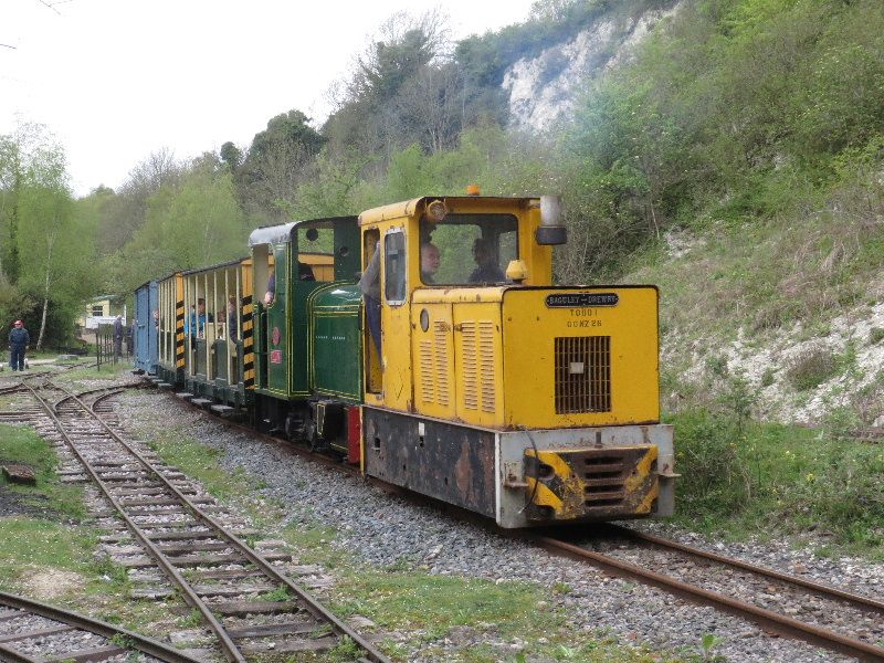Later in the day, Peter was moved on to industrial duties and the passenger train taken over by Peldon, at that time still working, and James Smith's Baguley-Drewry, seen here climbing the gradient around the top of the pit.