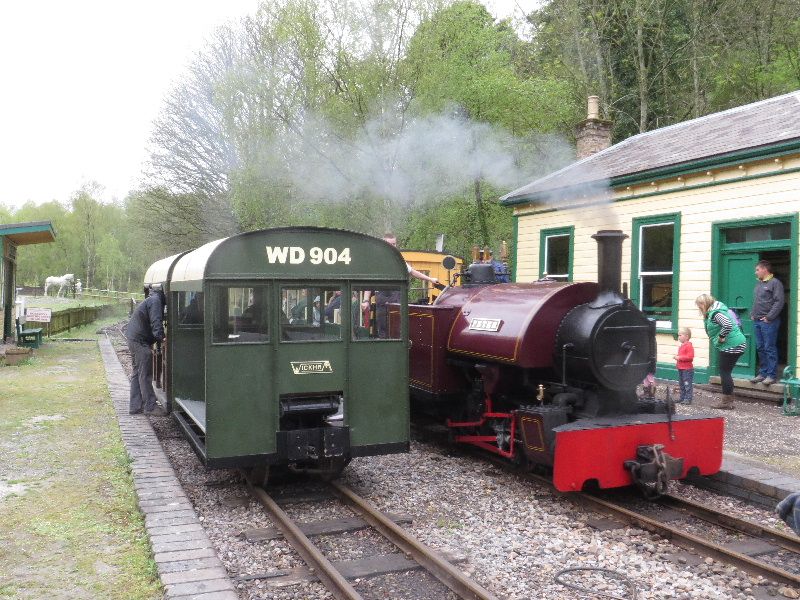 A while later and the Wickham set now bound for Amberley have to await arrival of the other passenger train hauled by Peter.