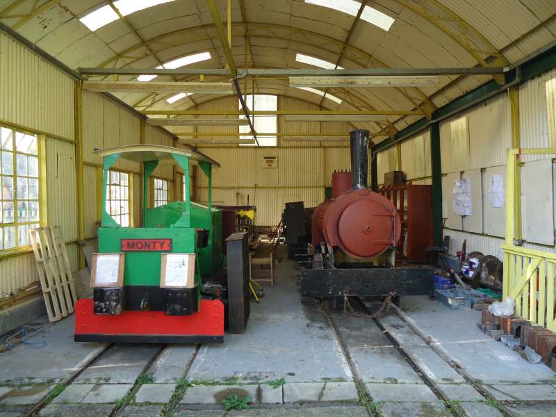 ![]() Betchworth Hall - the large corrugated shed next to Brockham Station was originally intended to become the home of our collection of items from the Dorking Greystone & Lime Company's quarries at Betchworth, near Dorking in Surrey. Unfortunately, pressure on our limited workshop space has meant that this intention had to be put aside and the building became an extension to our workshops and much useful work has been done there, but to the detriment of the Betchworth exhibits. This is, hopefully, about to change. On the right is the Fletcher Jennings 0-4-0T locomotive, Townend Hook, built in 1880. It is our oldest locomotive by some 25 years (except for the Hampshire Narrow Gauge Railway Trust's "Cloister" which is currently housed at the Museum). There was a second locomotive, William Findlay, to the same design which is preserved also. As can be seen, some work on protecting the boiler had already been done. On the left is one of the diesel locomotives acquired by the company named "Monty", an Orenstein & Koppel single cylinder loco.