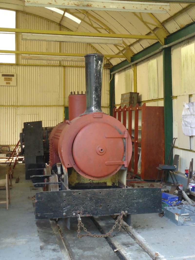 Close-up of a very sad looking Townsend Hook with basically the frames, wheels and boiler being the only pieces actually attached to the locomotive. Temporary wooden axle boxes are fitted to enable us to move the chassis around when needs be.