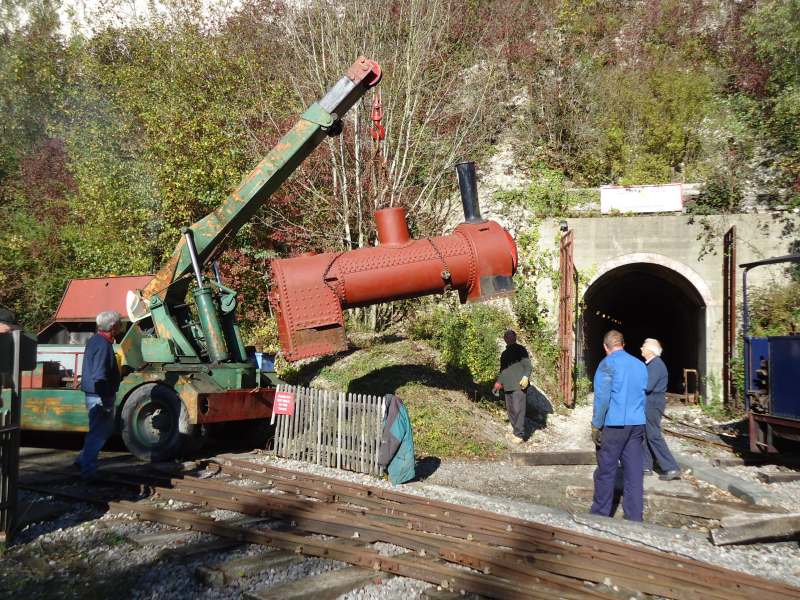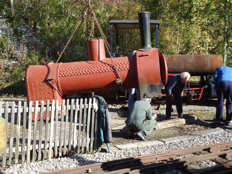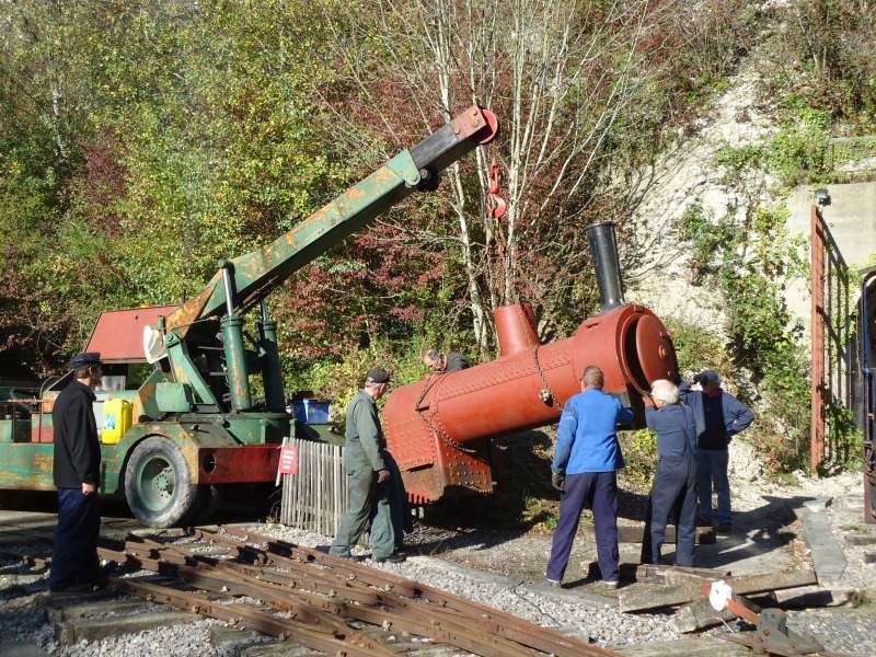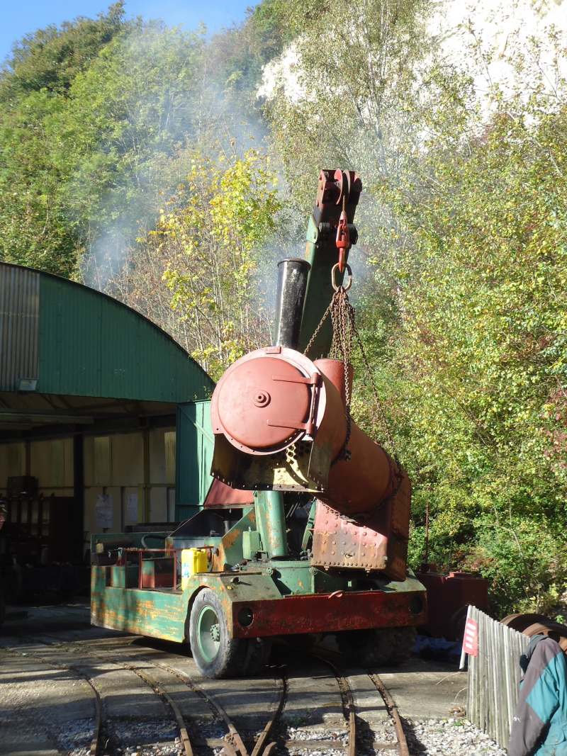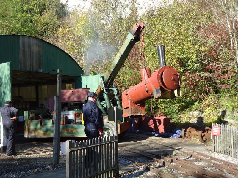 In mid-October, the Museum's crane was used to lift the boiler off the frames so that work could be undertaken on the frames and the motion refitted.
