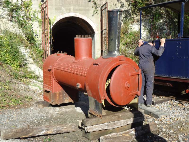 It was decided that the boiler would be placed on the small area of concrete outside the tunnel. Gradual progress into this postion was soon achieved.