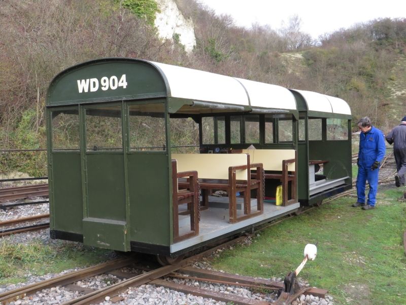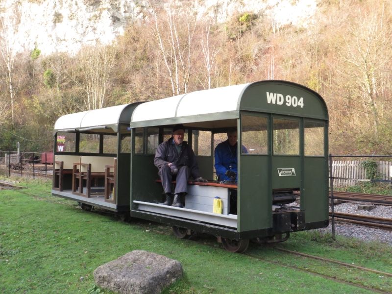30 November 2014 Although the Wickham power car has been running well for some time, it had not been used with its trailer car for a long time, mainly because of the rather inadequate coupling on the power car. Of course, the trailer is often used with one of the Wingrove and Rogers BEV battery locos. Work on the manufacturer of a more robust coupling has now been completed so we had to take them for a run, didn't we? Yes of course we did.