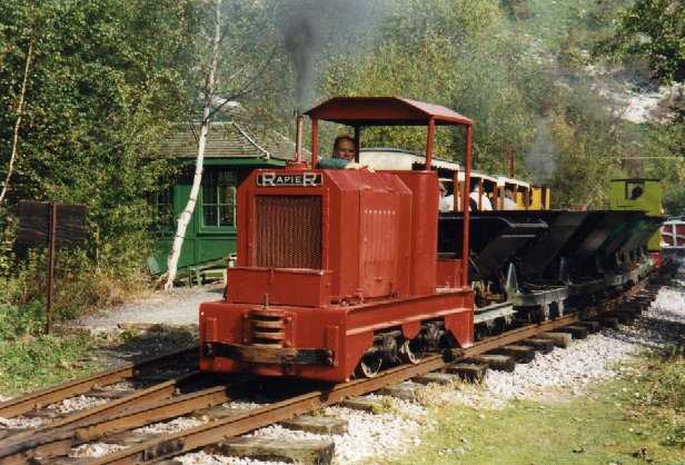 RANSOMES AND RAPIER 80/1937. This locomotive was built new for George Cohen & Sons for use at their Cuba Works in Swansea and was delivered in November 1937. After only a few months, the loco was returned to the manufacturers and then passed to the Chinnor Cement & Lime Co. Ltd. in Oxfordshire in March 1938. Here it was restricted, along with another two Rapiers and a Hunslet, to shunting in the quarries and washmills, the main haulage in the chalk pits being by two rope-worked lines. The railway at Chinnor closed in 1962, and in April 1966, the Rapier was acquired by Brockham Museum, where it was restored using parts of R&R 82 from The Ashover Light Railway. No. 80 came to Amberley along with the rest of the Brockham collection in 1981. Very few of these machines, by narrow gauge locomotive standards, were built and there are now only two Ransomes and Rapiers still in existence; the other, 84, is still working in the peat industry in Ireland, although it has been heavily rebuilt.